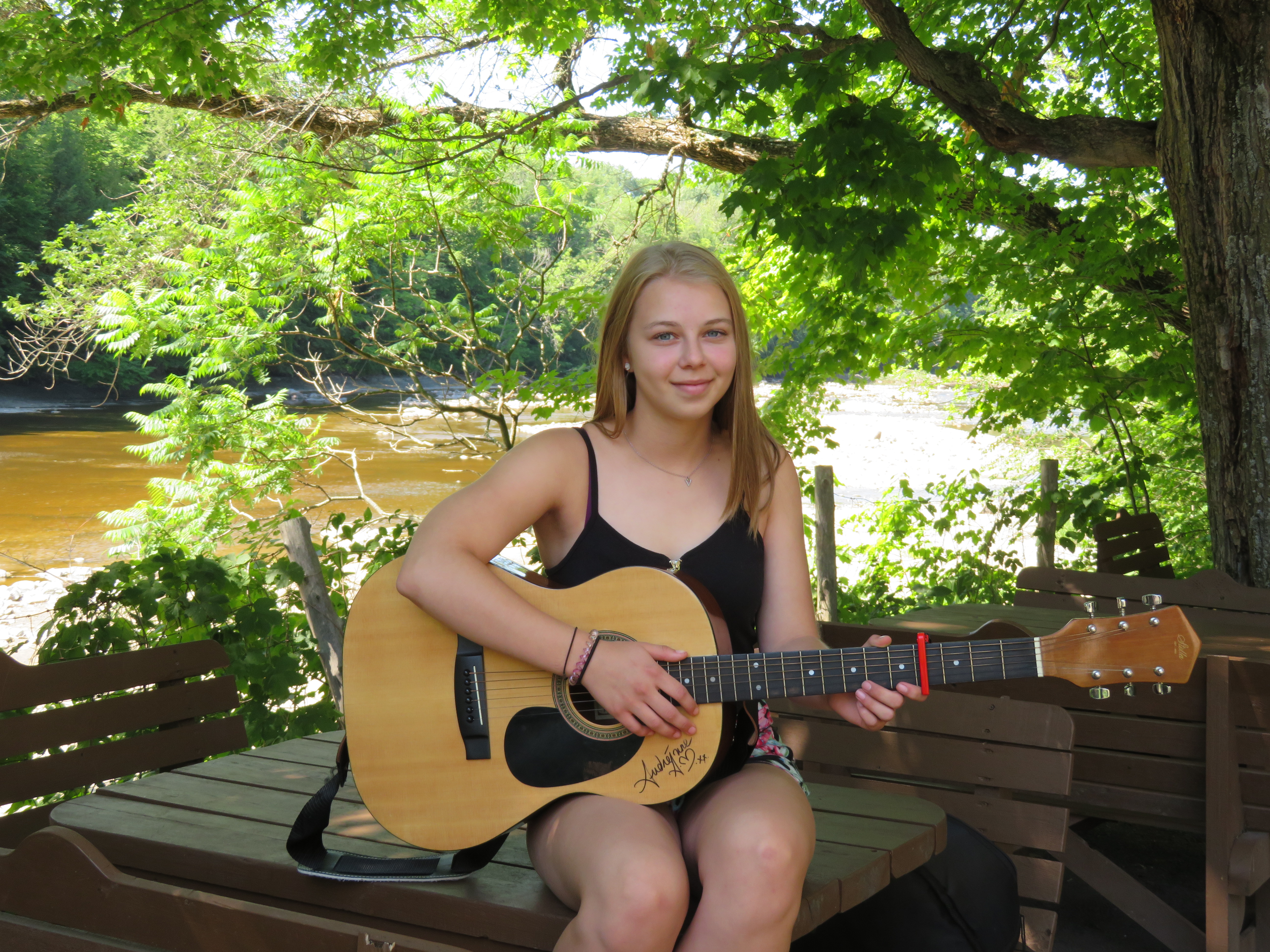J'ai 17 ans et je suis présentement en secondaire 5. Je suis une fille très énergique qui adore avoir du plaisir. Je me donne à fond dans tout ce que j'entreprends et j'adore les défis. J'aime faire des prestations sur scène et montrer ce que je suis capable de faire, en m'accompagnant moi-même, avec un band ou seulement avec une trame sonore. En plus de chanter, je joue de la guitare électrique ou acoustique, de la basse et un peu de piano. Je fais plusieurs styles musicaux, la musique m'apporte beaucoup de bonheur et c'est un moyen pour moi de faire paraître mes émotions ainsi qu'un passe-temps indispensable.
